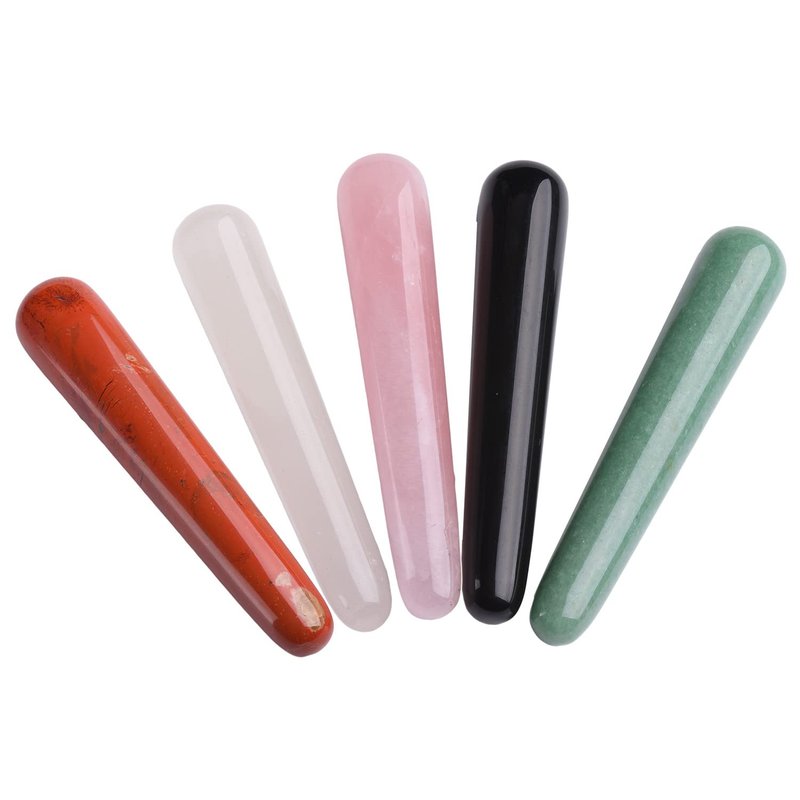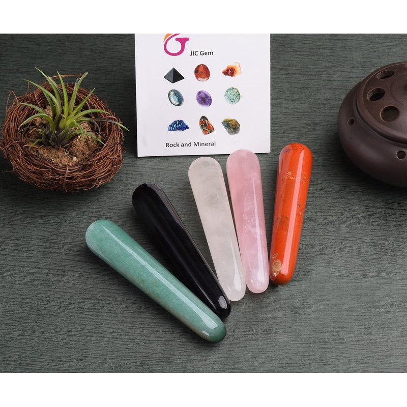 JIC Gem 5 Pcs Mix Natural Crystal Gua Sha Scraping Massage Tool Massage Wand for Face Acupuncture Therapy Stick Point Treatment Reiki Healing