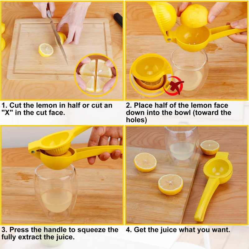 - Efficient Extraction - JIEJIE lemon squeezer won’t waste even a single drop of juice! The holes at the bottom of the citrus juicer serve as a built-in strainer to prevent the pulp and seeds from ruining your favorite cocktail or lemonade.