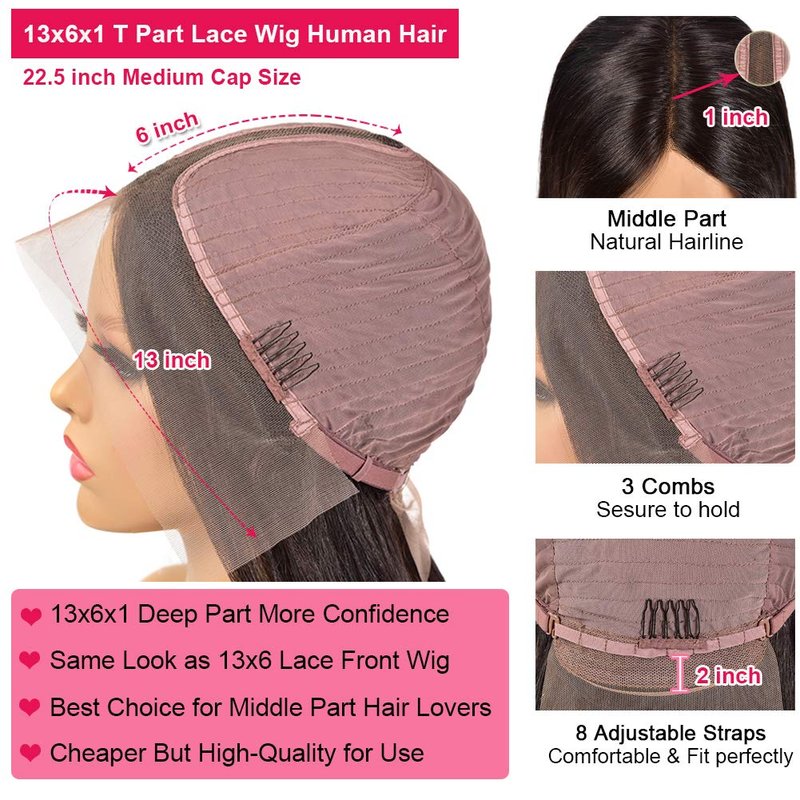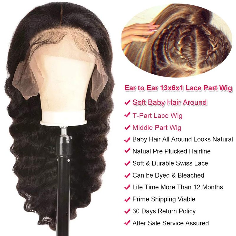 - Color: 13x6x1 T Part Loose Deep Wave Wig