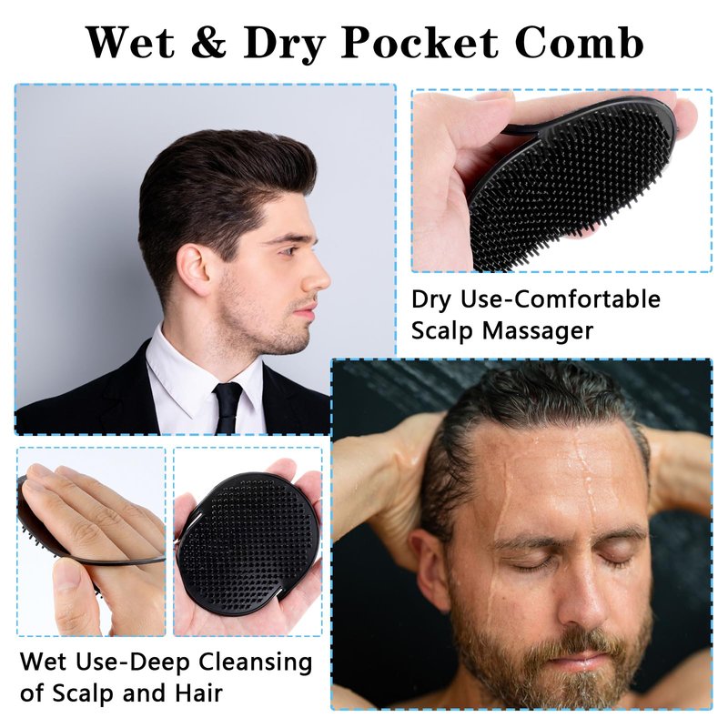 - 【Travel Hair Brush】The scalp massager brush comb is lightweight, portable, and won't bring extra burdens. You can use this pocket palm comb at home, in the office, or while traveling. It can be used as a shampoo comb, massager hair brush, or pocket comb for travel. It is suitable for most hair types, especially short or curly hair, and can also be used for grooming beards. These pocket hair brushes for men are perfect for everyday grooming and styling needs.