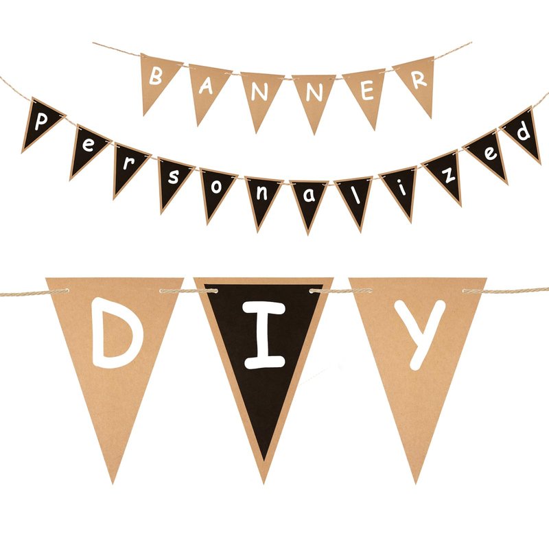 - 【DIY Triangle Bunting】The chalkboard buntings are blank on both sides, one side is black, one side is brown. Rustic paper bunting can be DIY. The black side is good for writing with pen and the brown is perfect for drawing and printing. So you can decorate your own bunting by yourself.