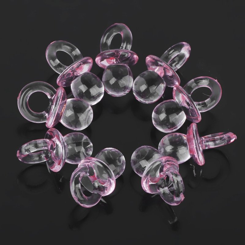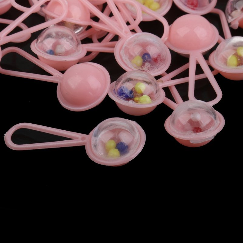 Jili Online 150pcs Pink Mini Rattles Safety Pins Pacifier Charms Table Scatters Decoration Christening Baby Shower Supplies