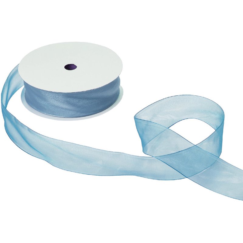 - Pretty pastel blue sheer organdy ribbon ideal for a wide variety of special occasions