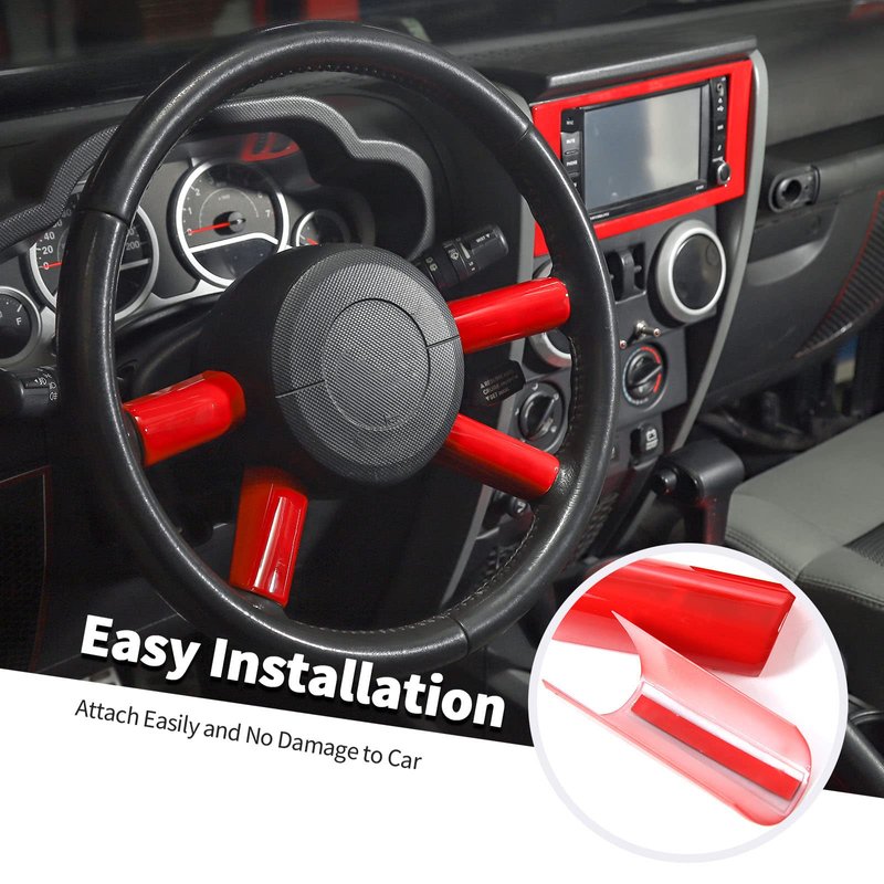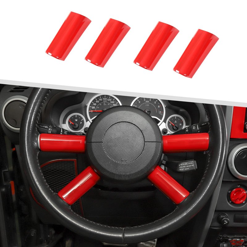 Jimen Compatible with Jeep Wrangler JK JKU 2007-2010, 4PCS Car Steering Wheel Overlay Cover Interior Trim Accessories (Red)
