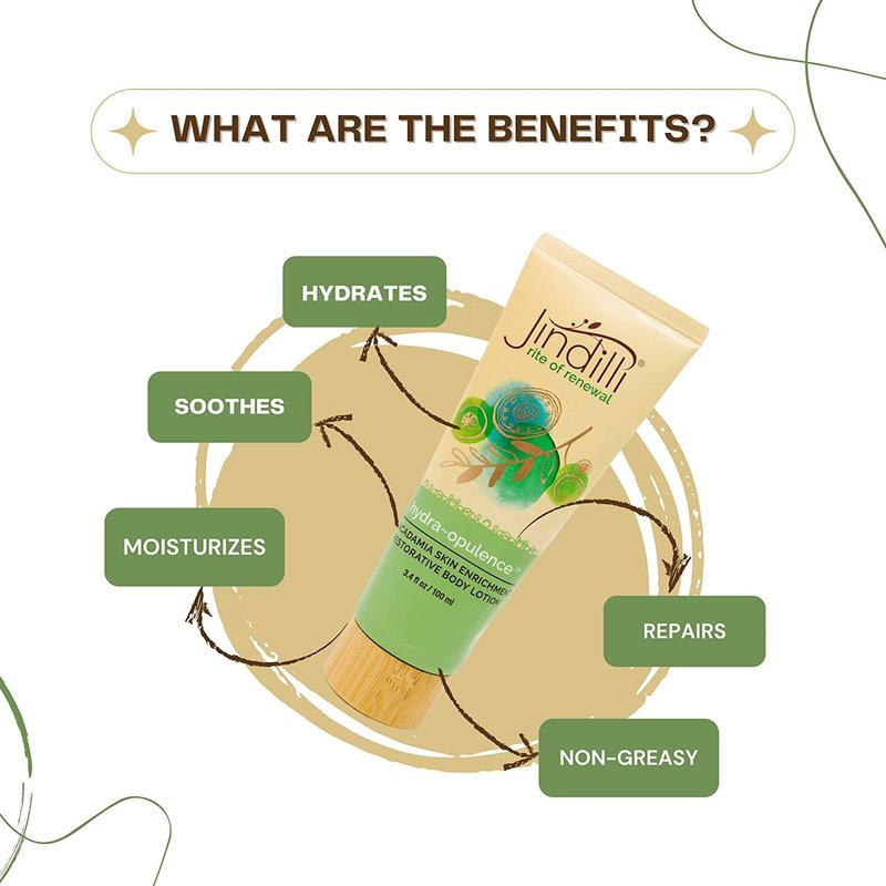 Jindilli, a family-owned brand from Australia's Northern Rivers, proudly presents its Hydra~Opulence Lotion. This luxurious, fast-absorbing formula is designed to deeply hydrate and soothe dry, irritated skin. Enriched with high concentrations of pure macadamia oil, it provides intense moisture, leaving skin feeling soft, supple, and radiant. Combining cold-pressed macadamia oil with aloe vera, Hydra~Opulence boasts over 96% natural ingredients. Its hypoallergenic, fragrance-free formula is gentle enough for sensitive skin and effective in treating conditions like eczema and psoriasis. It’s also ideal for sun-damaged skin and works wonders for tattoo aftercare. Spa professionals use Hydra~Opulence for body treatments and massages, thanks to its soothing, cooling properties. This versatile lotion nourishes and revitalizes, ensuring vibrant, resilient skin with regular use. Its sleek, travel-friendly size makes it easy to maintain healthy, glowing skin wherever life takes you. Jindilli’s eco-friendly production process ensures the highest concentration of macadamia oil, making it a highly effective and luxurious beauty treatment. With 30 years of experience, the Roy family’s commitment to quality shines through in every bottle. From farm to jar, Jindilli offers a simple yet powerful skincare solution that will transform your beauty routine.