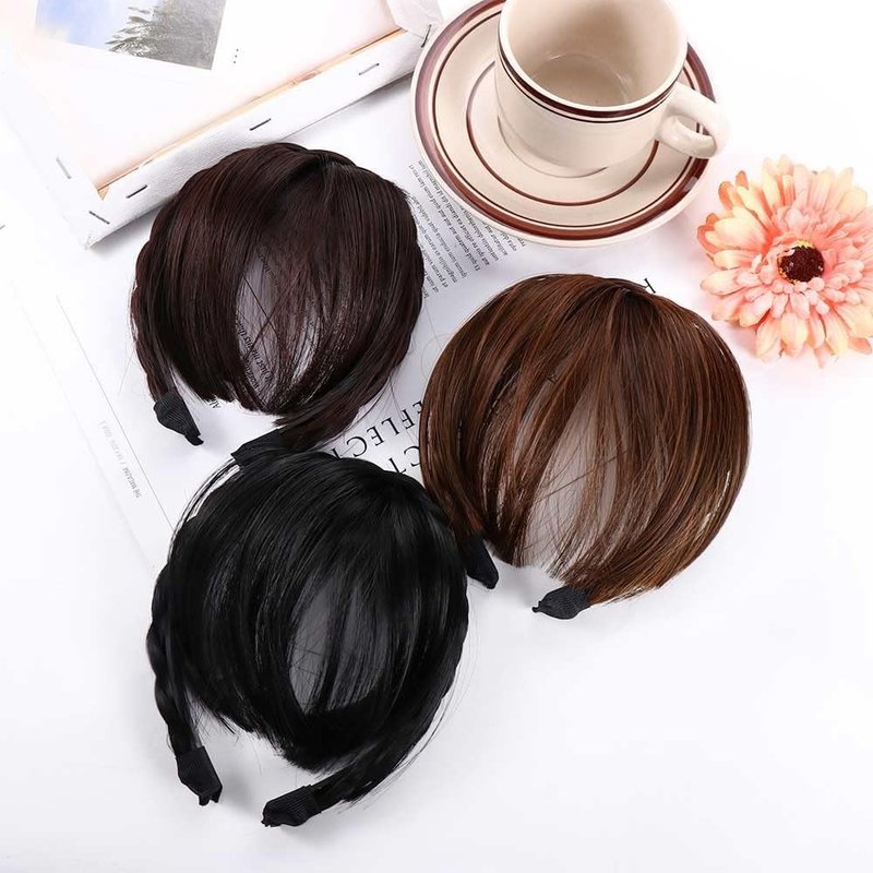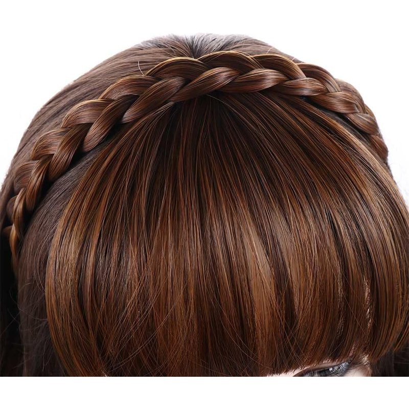 Jinshining Brown and Black Fake Bangs Hairband, Women Girls Fringe Bangs with Double Row Braids Headband Hair Extensions Hair Styling Tools,Hair Accessories,Women's Fashion Headbands