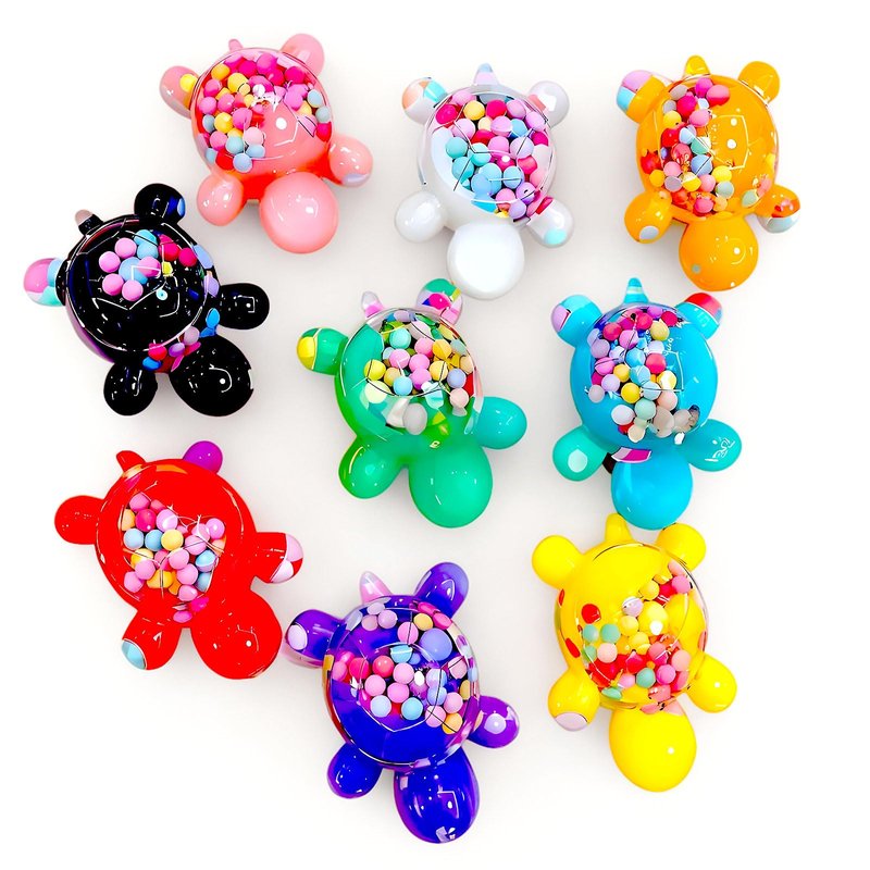 - Liquid Motion Turtle Size: The set consists of 9 small sizes, measuring 3.66 inches. This ADHD relief toy has multiple brightly colored drops, making them a fun activity toy for family and friends. Applicable age 3+