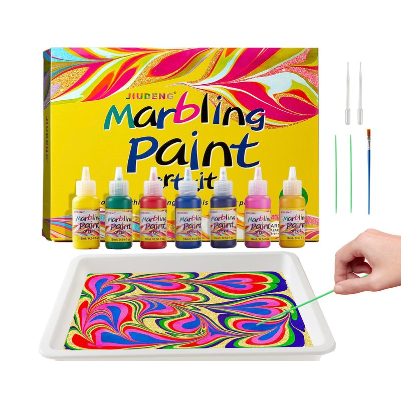 - 【The Best Arts & Crafts Kits】Our Crafts Kits has everything you need and start on your marbling journey.It comes with 6 vibrant paint and 1 gold metallic paint in 16ml bottles, Plus, you'll get 10 sheets of paper, 4 blank bookmarks, 2 needles, 2 pipettes, tray, manual and other painting, drawing & art supplies.Which makes this art supplies crafts kits an ideal gifts option for kids