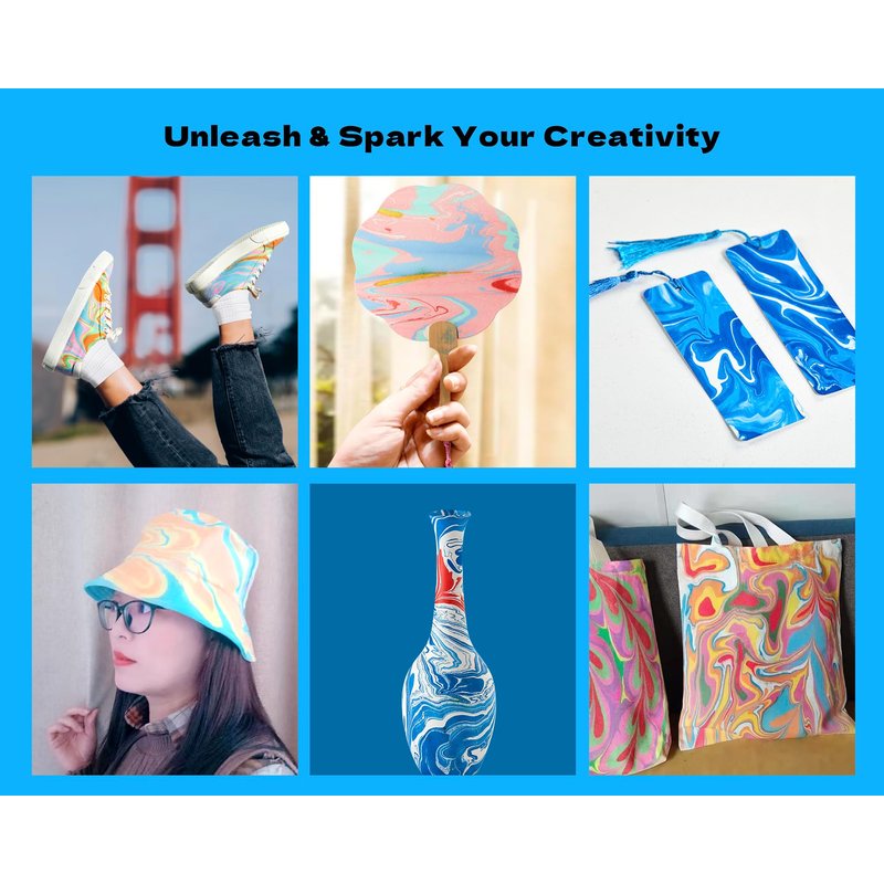 - 【Marbling Paint Set for kids】Make It Unique, layer paint, swirl to any pattern and transfer to paper, easter eggs, stone, scarf, vase,shoe or any other smooth surface!Beautiful marble-painted art! Follow the simple illustrated instruction guide and create fantastic art.