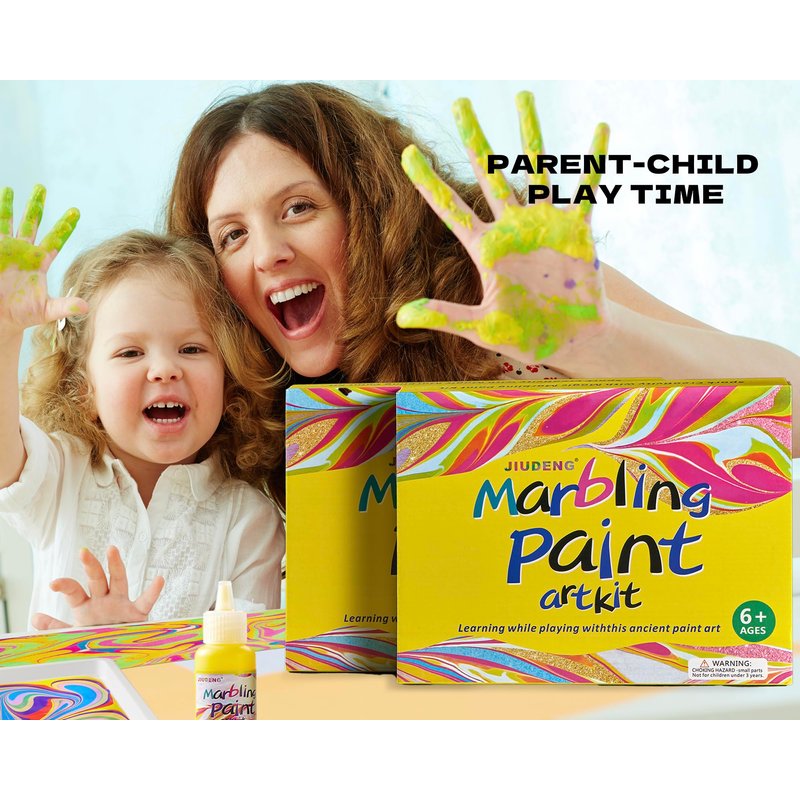 - 【Safe and Nontoxic Art Kit】JIUDENG water marbling paint kit pigments and carrageenan are safe, non-toxic and environmentally friendly. Our craft kits are tested in strict accordance with product safety policy. Conforms to the ASTM D-4236 requirement and is awarded many certificates like CPSC, and CPSIA.