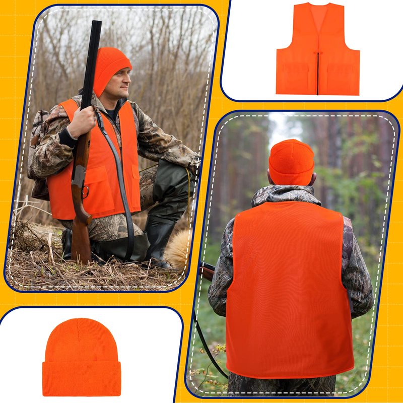- Package Contents: you will receive 3 orange hunting hats and 3 volunteer vests in blaze orange, which are bright and obvious, easy to attract others' attention in a lot of occasions, and the hat can keep you warm in cold weather, helpful for your safety in a lot of activities; And this quantity is enough for you to use and replace, you can also share them with others