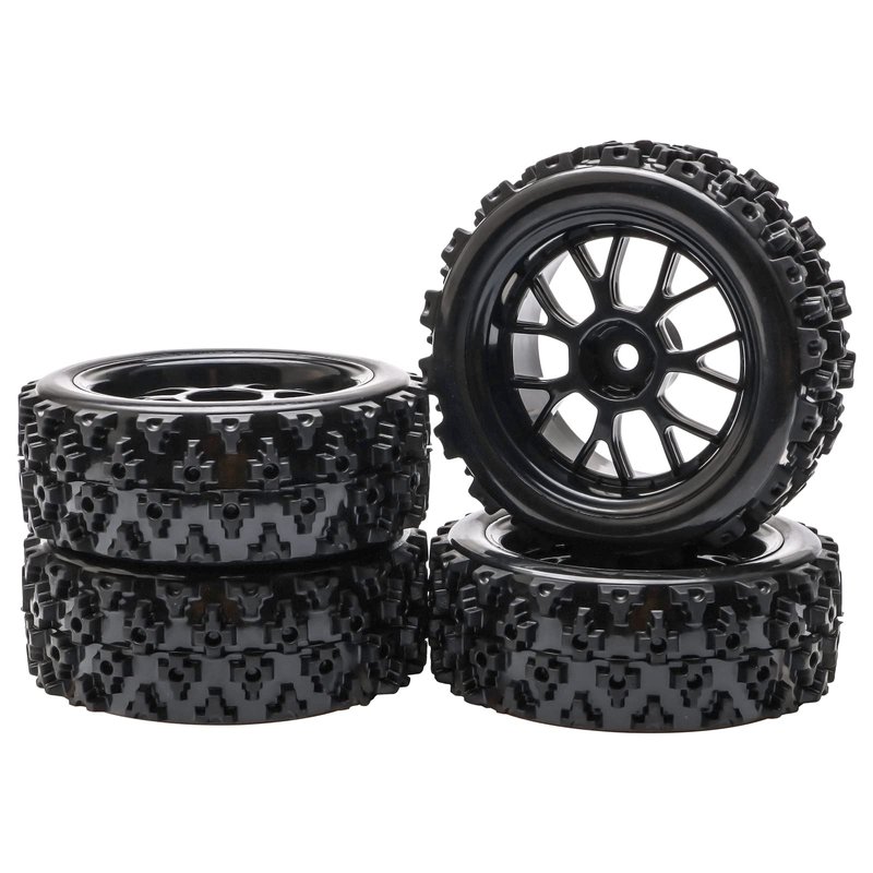 - This rc wheels with rubber material has a certain degree of elasticity, can absorb the road vibration and impact, reduce the damage to the remote control car parts, but also can improve the driving comfort. Rc tires 1/10 good grip, elasticity and shock absorption, wear resistance, waterproof, adapt to different road conditions, quiet and relatively , for players to provide a good handling performance and experience