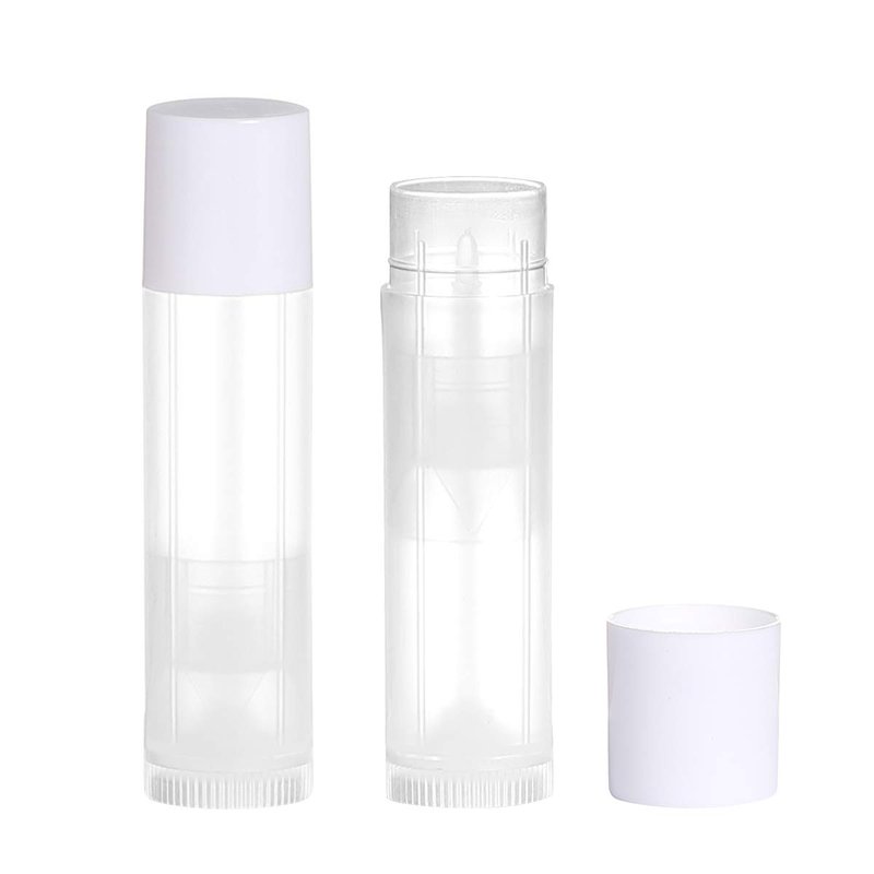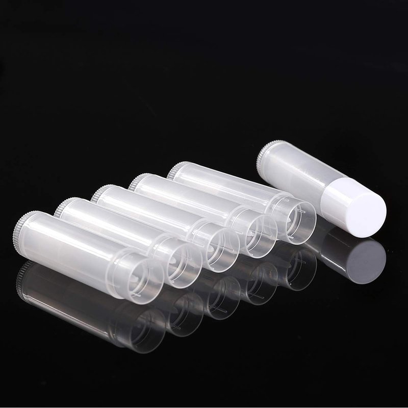JIUZHU 100 Sets Empty Lip Balm Tubes Bulk Round with White Caps for DIY Lipstick homemade, 3/16 Oz (5.5 ml), Clear, BPA Free, 100 Tubes and 100 Caps