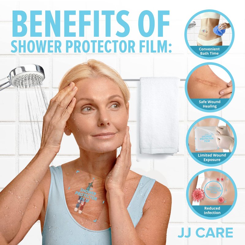 - EASY APPLICATION - The JJ Care waterproof ostomy shower protector is easy to apply even without any assistance. Carefully follow the wound care bandage protector accompanying instruction to create a secure watertight seal. Do not lay the film flat against the wound site. These waterproof bandages post surgical for showering are for single-use only and should be disposed of after use.