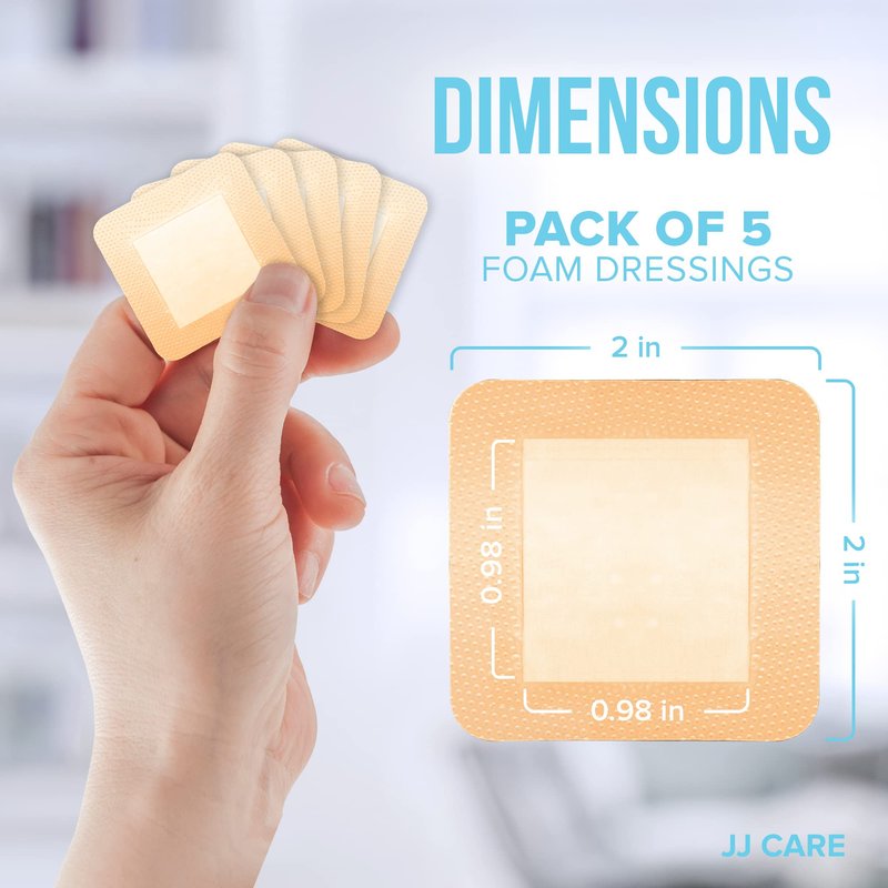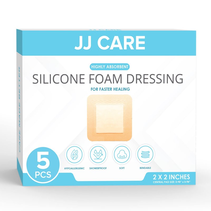 - SUPERIOR WOUND CARE – JJ CARE’s silicone foam dressings for wounds offer high absorbency, great fit, and promote fast healing for most wound types and stages. This self adhesive foam bandages for wounds helps create a conducive environment for healing by keeping the wound moist and preventing bacterial contamination/activity. JJ CARE’s silicone dressing wound use is also non-linting which is great for conditions that require regular dressing change.
