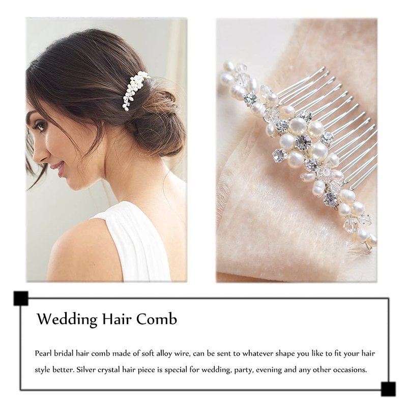 JJAKAWIN Bride Pearl Wedding Hair Comb Silver Hair Piece Rhinestone Headpiece Bridal Hair Accessories for Women and Girls HC043