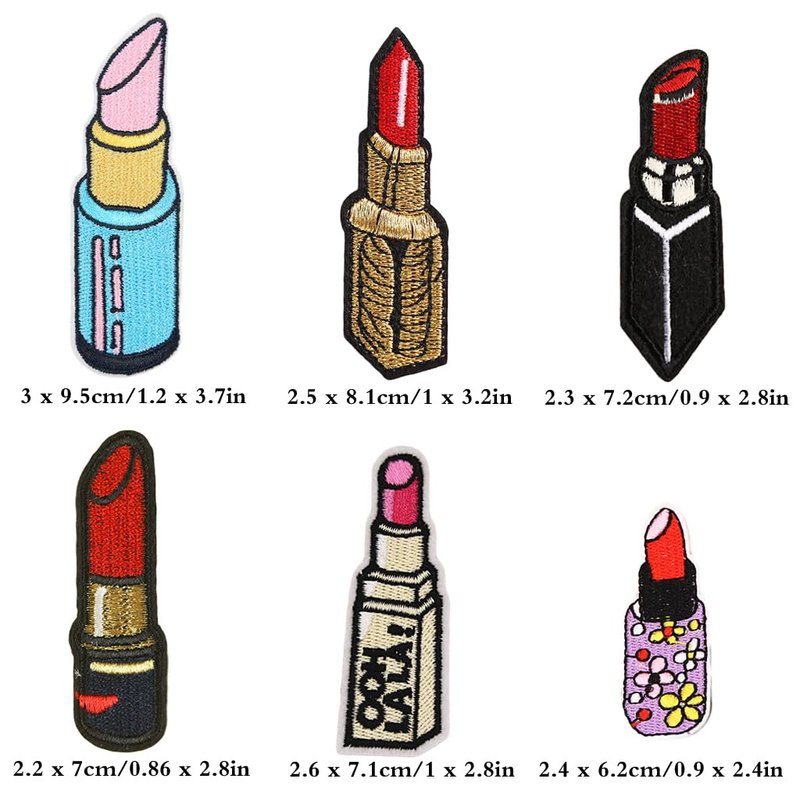 - Package list: 12 Pcs Lipstick Embroidery Patches, 6 styles, each styles has 2 pcs.