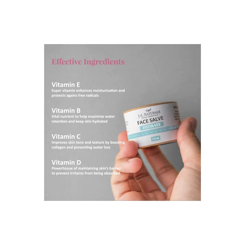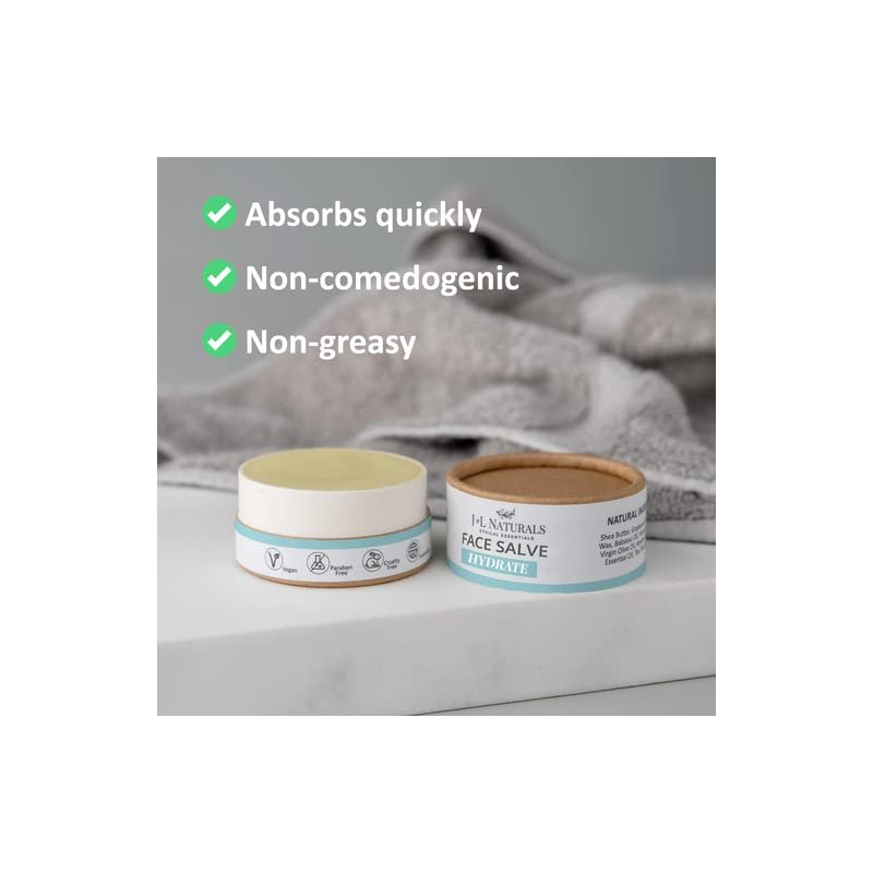 J&L Naturals Hydrating Face Salve Dry Skin Face Moisturizer | Organic Ingredients, 100% Natural, Eco-Friendly | Cruelty Free, Vegan, Paraben Free (1-Pack)