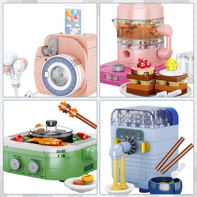 - 🌈 Mini Home Appliance Building Set - JMBricklayer mini building block set includes 12 small home appliances toys of different styles, such as camera, computer, multi-function cooking pot, electric fan, noodle maker, etc. Each girl toy is rich in color, realistic in shape, and looks very cute. Children can gain a deeper understanding of everyday household appliances through the mini toy set, and parents can enjoy the fun of assembling blocks with their children.
