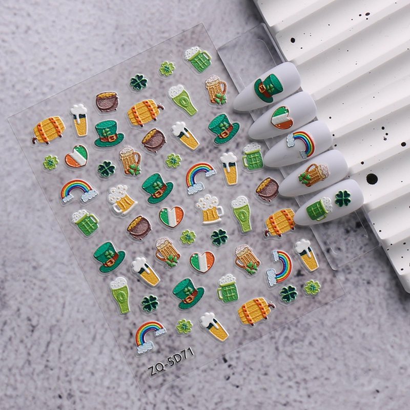 JMEOWIO 3D Embossed St Patricks Day Nail Art Stickers Decals Self-Adhesive Pegatinas Uñas 5D Green Clover Gold Hat Nail Supplies Nail Art Design Decoration Accessories 4 Sheets