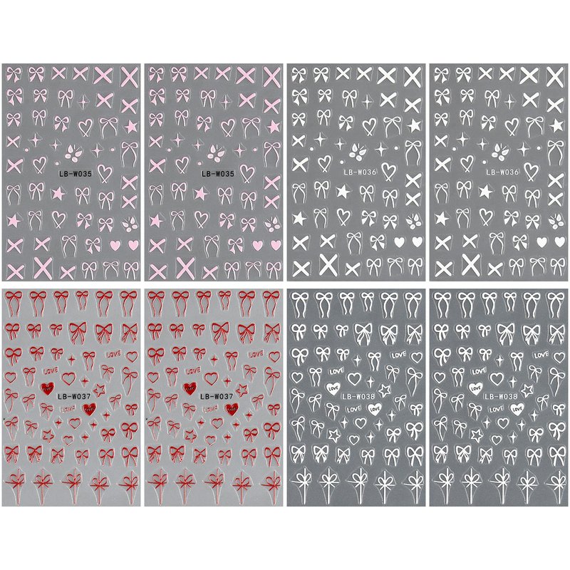 JMEOWIO 8 Sheets Heart Bow Tie Nail Art Stickers Decals Self-Adhesive Pegatinas Uñas Pink Nail Supplies Nail Art Design Decoration Accessories