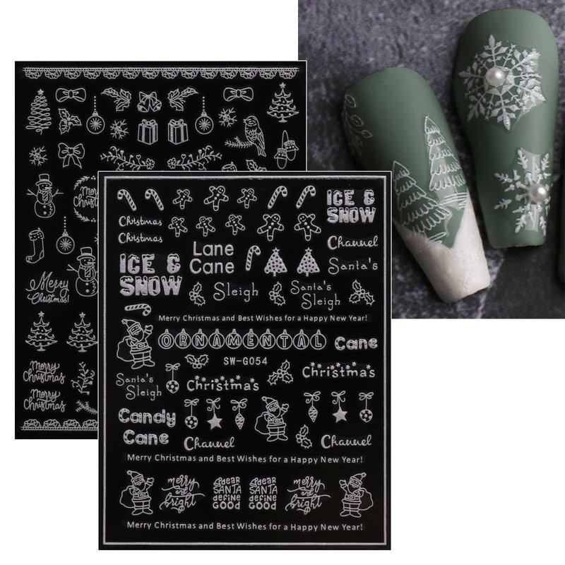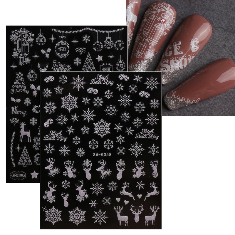 JMEOWIO 9 Sheets Christmas Glitter Nail Art Stickers Decals Self-Adhesive Snowflake Winter Holiday White Nail Supplies Nail Art Design Decoration Accessories