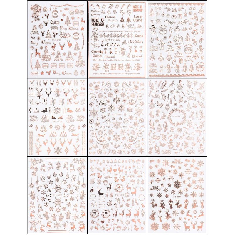 JMEOWIO 9 Sheets Christmas Nail Art Stickers Decals Self-Adhesive Pegatinas Uñas Navidad Rose Gold Winter Holiday Xmas Snowflake Nail Supplies Nail Art Design Decoration Accessories