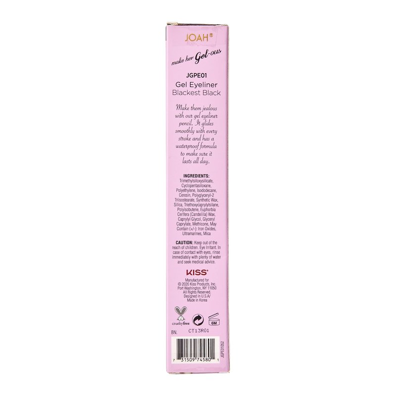 JOAH Make Her Gel-ous Gel Eyeliner with Self-Sharpening Pencil, No-Tug Waterproof Formula & Long-Lasting Finish & Color Definition, Creamy Gel Texture, Blackest Black