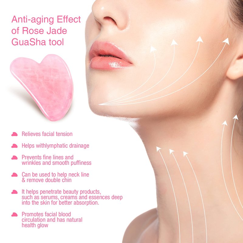 JOCHYA Natural Rose Jade Stone Scraping Board Material: Natural Quartz Jade Color: Pink As Shown Size: approx. 3.14*2 inches x 1PCS Features: 1. Premium, Gentle and Smooth, no skin irritation, doesn't feel cold on the skin, Not fragile, Suitable for all types skin. To improve the ability of the stratum corneum hydration, and thus play moisturizing effect. 2. Gua Sha facial tools eliminate fine lines, wrinkles, and inflammation. Improve facial blood circulation, speed up metabolism, anti-aging, whitening skin, beauty, and health. 3. Release muscle tension and improve lymphatic drainage with the Gua Sha massage ritual, Lighten pigment, and spots. Enhance skin immunity. 4. It helps release muscle pressure, tighten the skin, and delay the aging of visible skin. relieve fatigue, immediately wake up the body, and make you feel good, and start a new day! Best services: We will provide the best service, if you have any needs, please contact us in time, we will give you a reply within 24hours. If this product has quality problems and defects, please contact the Amazon logistics team for free return and replacement. you have any questions about this product, please contact the merchant in time to get the best shopping experience. Thank you!