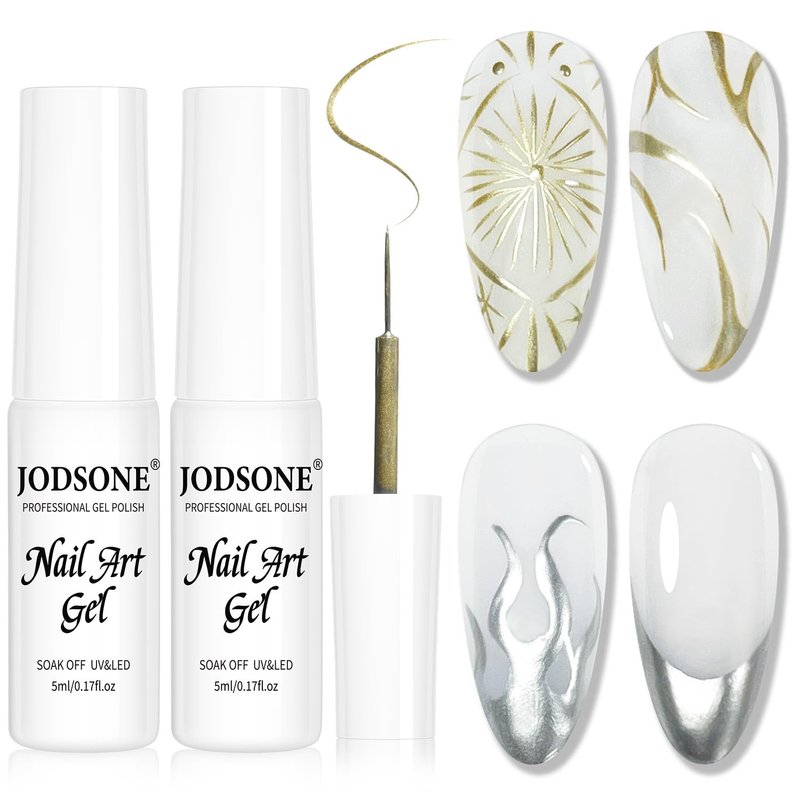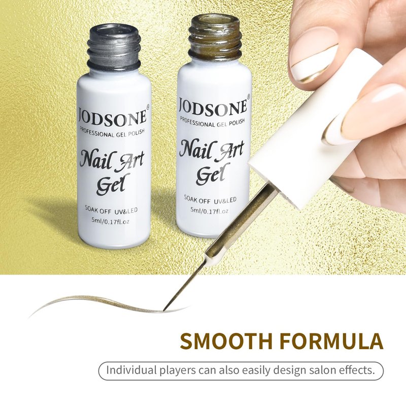 JODSONE 2pcs Metallic Nail Art Gel Liner Gold Mirror Chrome and Silvery 3D Effect Gel Nail Polish Thin Brush Metal Painted DIY at Home Salon Quality Gift for Women