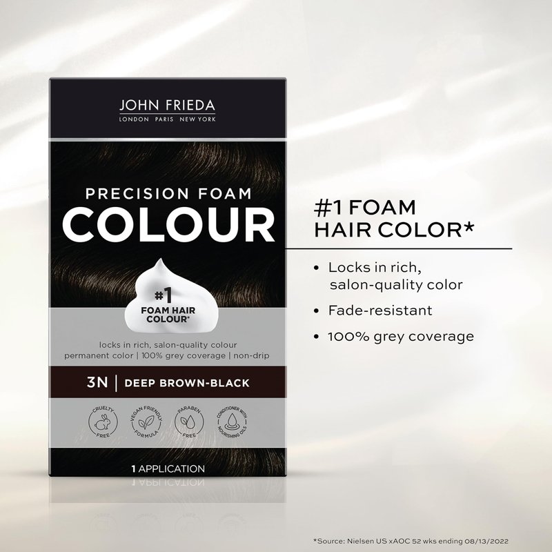 John Frieda Precision Foam Colour, Deep Brown Black 3N, Full-coverage Hair Color Kit, with Thick Foam for Deep Color Saturation