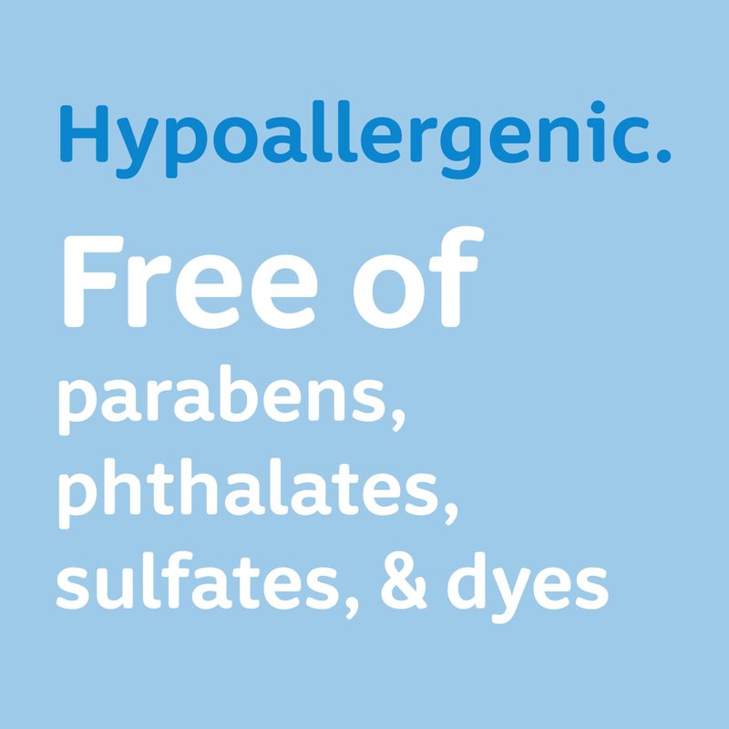 - With clinically proven mildness, the hypoallergenic lotion is tested with pediatricians and dermatologists and contains no parabens, phthalates or dyes