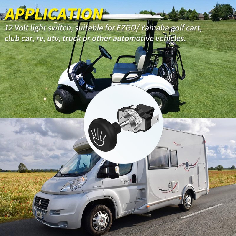 - ★Wide Application★ 12V light switches are suitable for ezgo/ yamaha golf cart, club car, rv, utv, truck or other automotive vehicles need lighting control.
