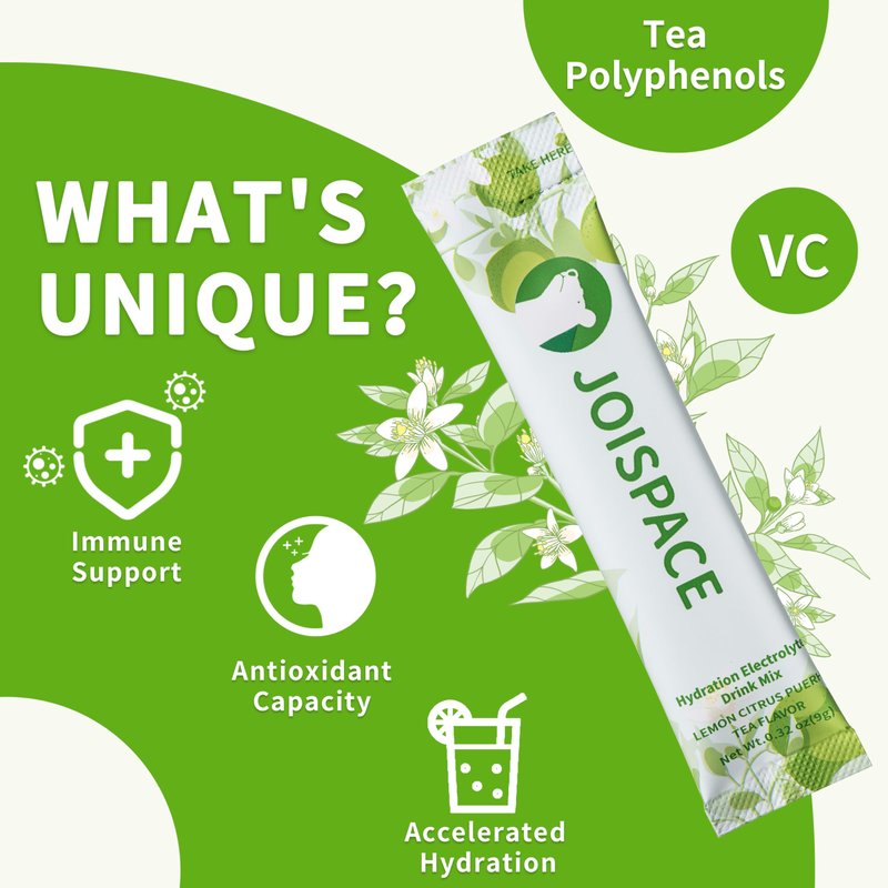 - 【Innovative Tea Flavor】Tired of drinking fruity electrolyte drink mix, JOISPACE exclusive innovative flavors, fusion of tea elements, delicious sweet, extremely fast thirst quenching, super hydration, strong refreshing. Fresh herbs and natural fruit flavors intertwined, lemon black tea, grapefruit jasmine tea, pomelo green tea, green grape oolong tea, lemon ganpu tea five flavors to choose any not regret.