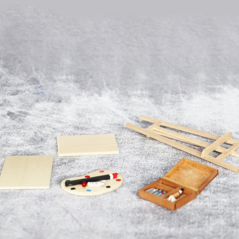 jojofuny Doll House Accessory Painting Tool Set Wooden Easel Dollhouse Furniture Decoration Set Balcony Patio Furnitures Decoration Accessories 1 12 Scale