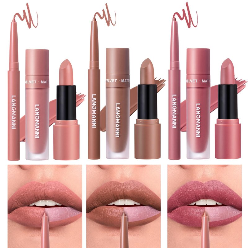 - Velvet Lipstick Set: Matte Velvet Lipstick Set-Lip Liner, Lip Gloss and Lipstick makeup kits gives your lip a full, sensuous full of temptation. formulated with a luxurious, matte finish, soft like the silk Long-lasting and waterproof, hard to fade, not stick cup, fog surface velvet effect.