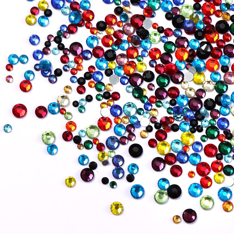 Jollin 3456pcs Flatback Rhinestones Glass Charms Diamantes Gems Stones for Nail Art 6 Size ss4~ss12 Color Mixed