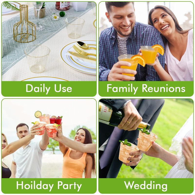 - Convenient Lifestyle: The one-off design of these 9 oz gold glitter cups makes it easy to clean up after a busy dinner service. It is the perfect solution for elegance and convenient dining in any venue