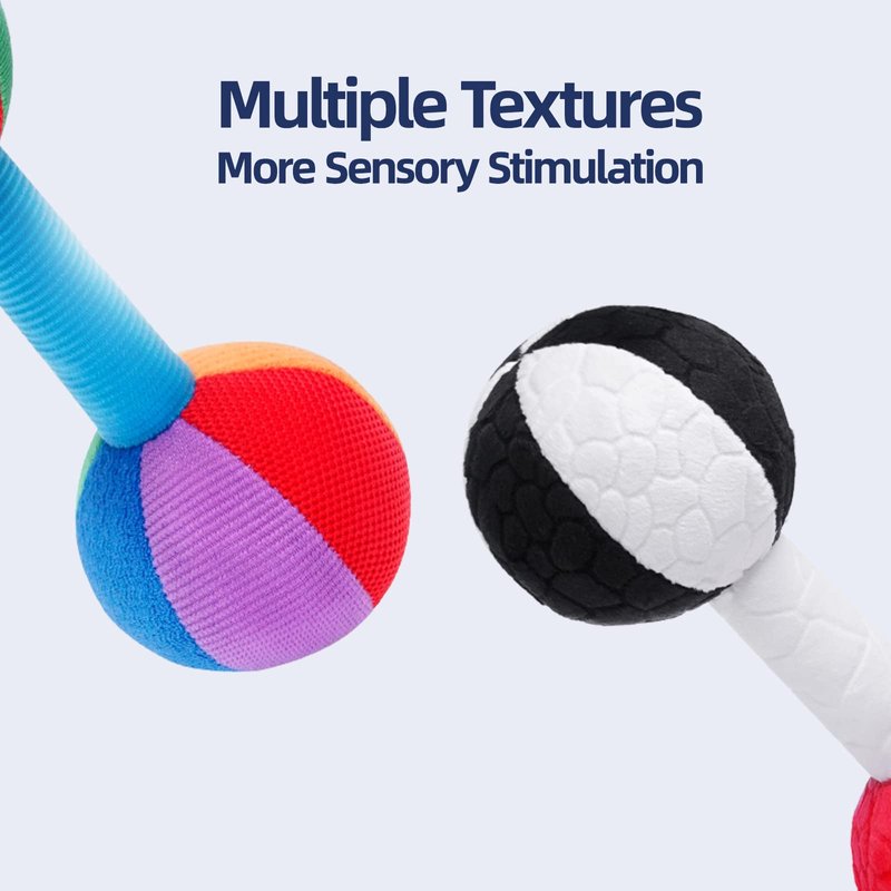 - FUNCTIONAL TOYS - the sensory rattles weights toys rustling sounds will expand babies' sensory experiences, colors and patterns help eye tracking skills. babies love to grab onto stuff. easy grip handle encourage baby's early grasping skills