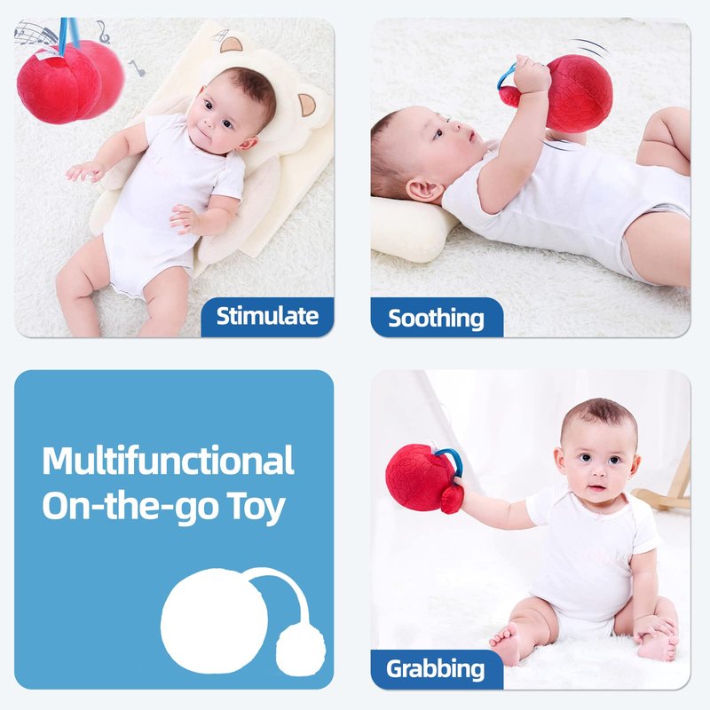 - ACROSS AGE RANGES TOYS: Sensory rattle toy is able to do activities in many ways with babies from 3 months - hanging on a gym mat bar above your baby to promote kicking. Until 5 months, your baby will begin to pinch the plush newborn toy, move the ball with their hands and begin to grab and grip it.
