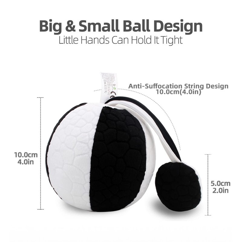 - HIGH CONTRAST INFANT TOYS: High-contrast Black And White oball toy is always a must-have for 3-6 month newborn. The Black And White color is suitable for early enlightenment of visual stimulation. When swaying the soft plush stuffed ball toy, the built-in rattle jingle and attract kids' attention for visual tracking.