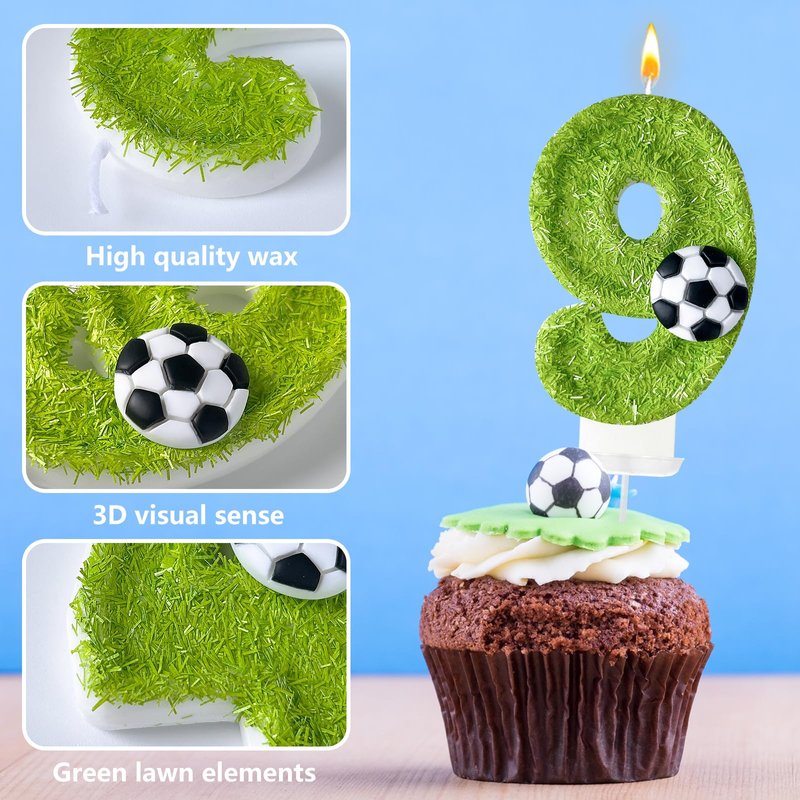 JonesLi 9th Birthday Candles,Soccer Birthday Decorations,Suitable for Girl and boy Cake Toppers, Wedding Cakes, Anniversaries, Party Celebrations, Birthday Decorations