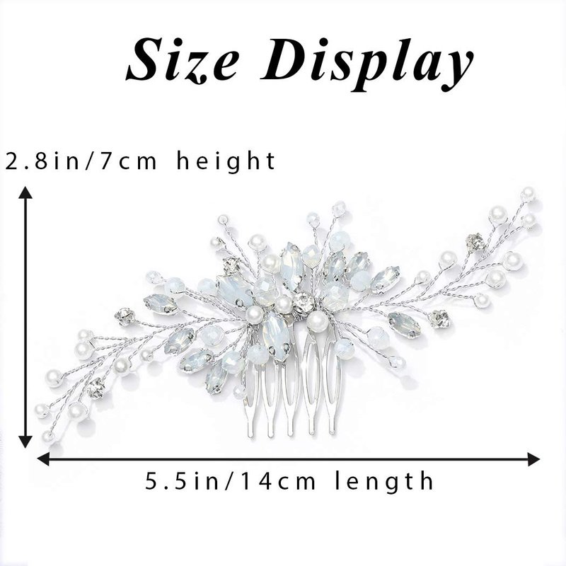 Jonky Bride Wedding Crystal Hair Comb Silver Pearl Hair Piece Rhinestone Hair Accessories for Women and Girls