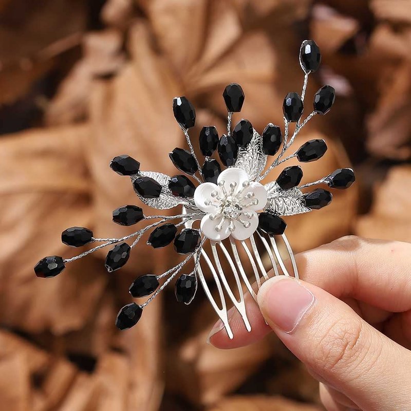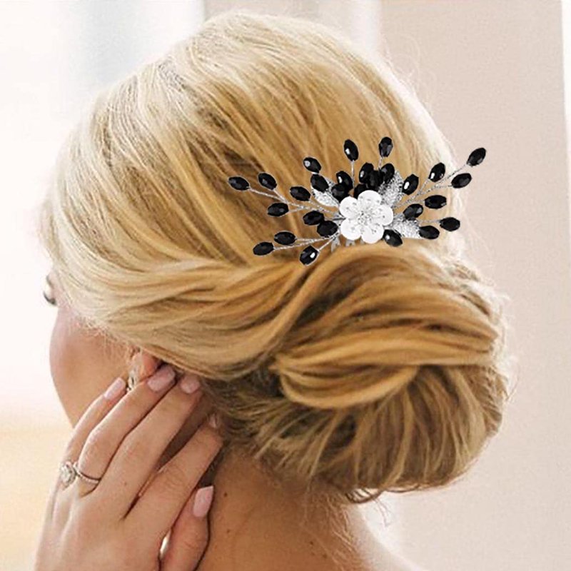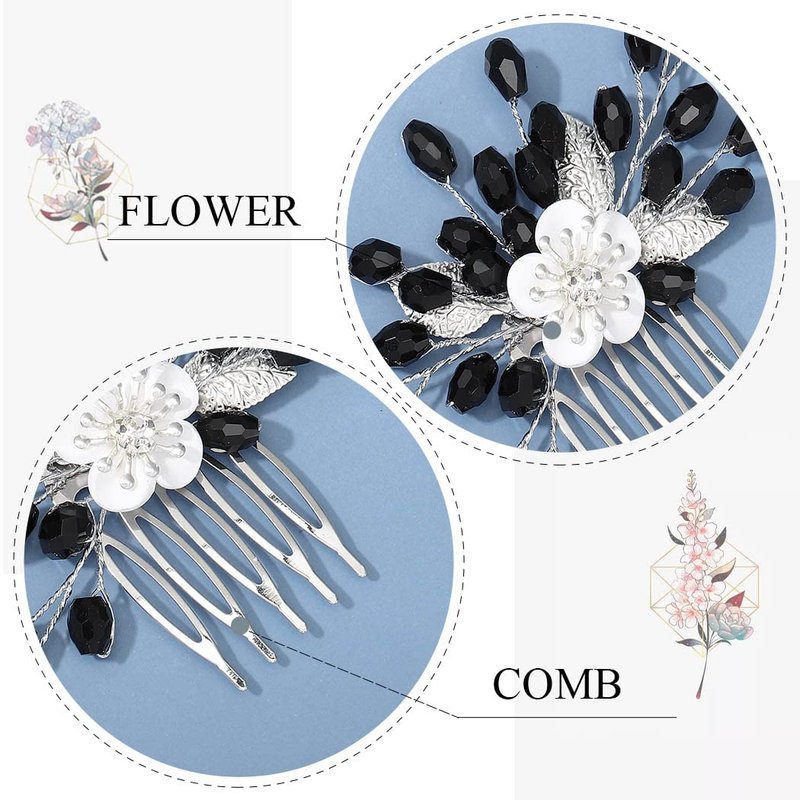 - Bridal hair comb for wedding is made of alloy and black beaded,which is not easy to fade and easy to wear.