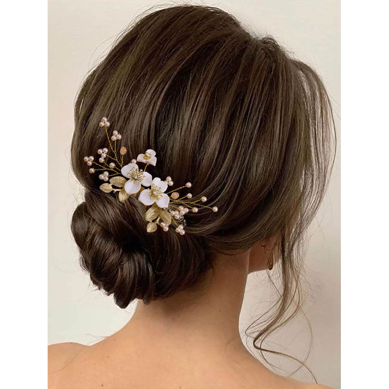 About Wedding Hair Comb for Brides:Bridal hair combs are handmade, unique and delicate hair accessories design, allowing you to present a most charming image on the weddings or other special occasions.Product design:Gold hair accessories are made of alloy wire, pearl,flower and leaf.It is simple but high-profile,full of elegant temperament, is ideal for adding sparkle to an outfit.Brides hair side combs are cheap in price and well-made, suitable for wedding, statement,ball party,festival, birthday, costume, honeymoon, prom, pageant,and other occasions.Exquisite bride hair accessory is suitable for a variety of hairstyles, and can be easily fixed, is a nice head jewelry for brides, bridesmaids or flower girls. Bridesmaid hair accessories is the exquisite gift for the bride.Flower hair side comb is the perfect complement, will add more charm to your wedding dress or gown and make ladies elegant and beautiful.Attention to the customers:Customer satisfaction is our primary requirement.We insist on providing customers with a pleasant shopping experience and guarantee the quality of products. If you have any questions, please feel free to contact to us. May happiness and joy be with you forever!JONKY will witness your happy moments with you!