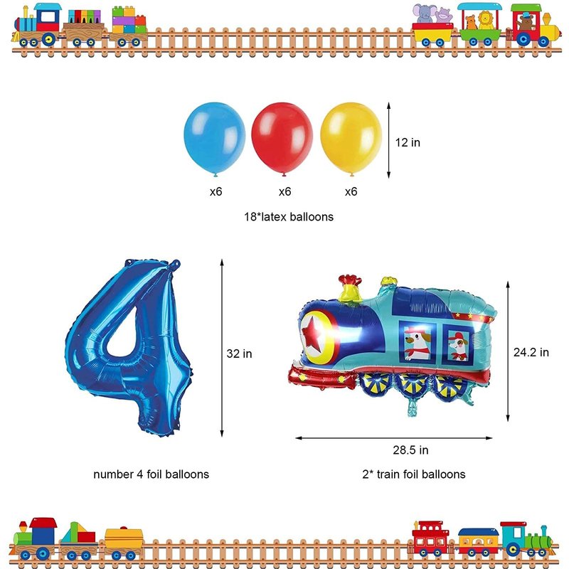 - 🚃【Packsge Include】1pcs train HAPPY BIRTHDAY banner,2pcs train foil balloons 1pcs number 4 foil balloon,18 latex balloons,Our decoration including everything your need, which will really make your little baby 4th birthday party funny and special.