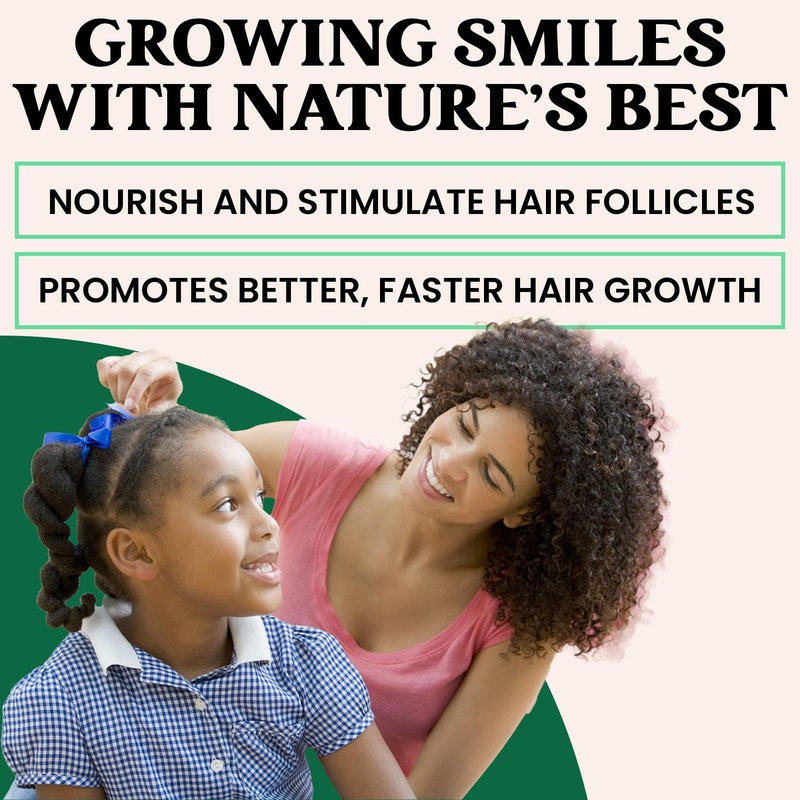 - 100% NATURAL & ORGANIC INGREDIENTS: Our product is among the best hair growth products for kids, free from harmful substances like parabens, sulfates, GMOs, and chemicals. It's handcrafted with care using all-natural and organic ingredients from around the world.