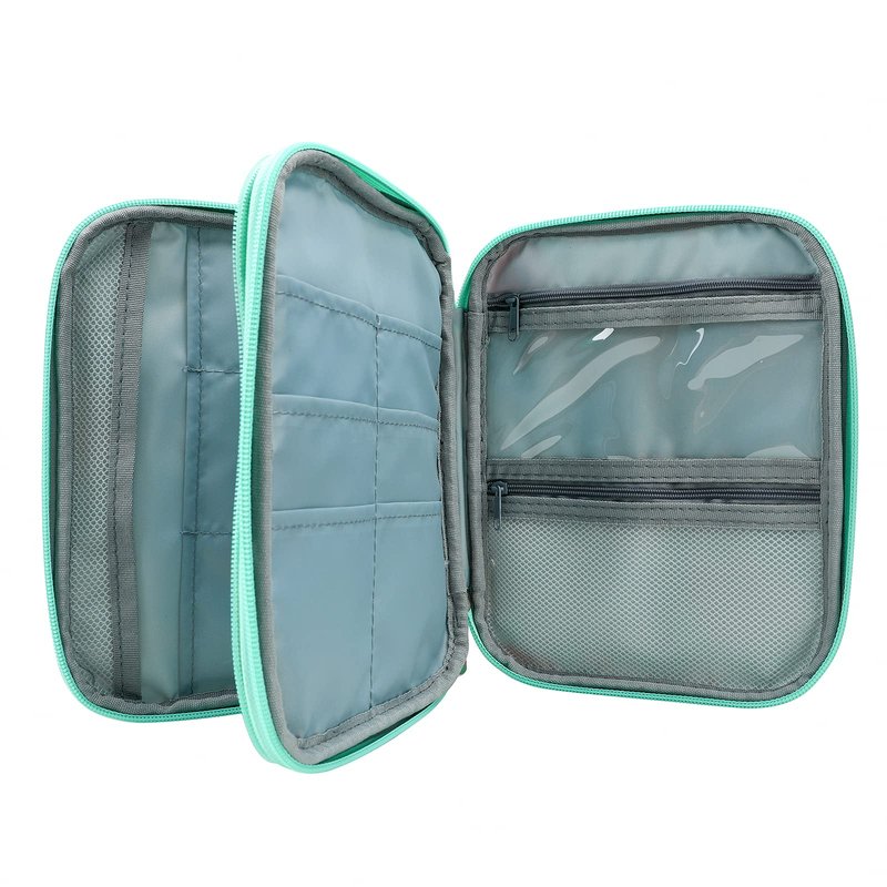 This storage bag has double layer design and with 16 pockets in total,which is enough roomy to hold knitting tools or sewing accessories,14 pockets for storing various crochet hooks,straight knitting needles (up to 8 inch),circular knitting needles.1 transparent PVC zipper pocket and 1 mesh zipper pocket for storing scissors,stitch markers,gauge measure ruler,measuring tape and other knitting supplies.The knitting needles storage bag is made of premium oxford fabric,durable,waterproof and wear-resistant,easy to clean.The well-padded lining keeps your knitting accessories in good condition.The knitting needles organizer pouch is compact and portable,easy to carry.The crochet hooks storage bag case will not take up too much space,you can place it in your handbag,backpack,suitcase,perfect for travel or knitting everywhere.The travel storage bag keep your all knitting accessories neatly organized,easy access to what your want.Two flaps to prevent knitting needles and crochet hooks falling down,zipper closure ensure your knitting accessories secure and can let the case open up all the way flat.This knitting accessories storage case is a best gift for your girlfriend,wife,daughter,mother,classmates,colleague,friends and so on,perfect as a gift for your family and friends on Christmas,New Year,Valentine's Day,Mother's Day,Birthday,Anniversary,etc.