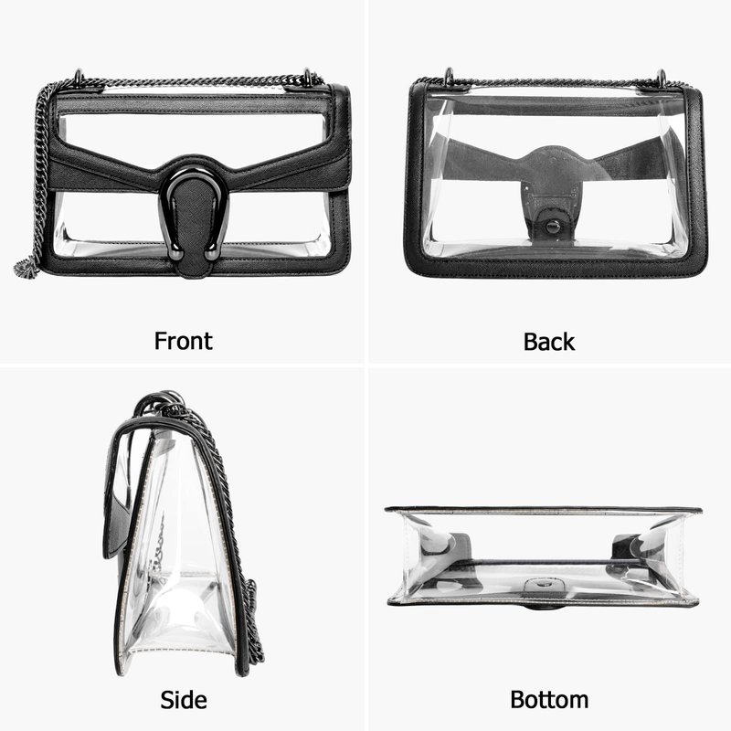 - Stadium Approved: Designed for stadium bag policy, sizes at 9.8" L x 7” H x 3.1” W, falling under the maximum regulated size most commonly required by secure venues. This clear purse for women helps you get through security much easier and keep you trendy and stylish at sports events, concerts, games, and festivals.