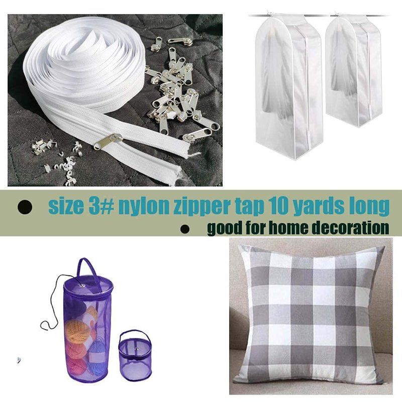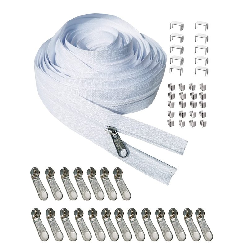 JOSDIOX Zipper by The Yard #3 White Sewing 10 Yard Long Zipper in Continuous Nylon Coil with 20pcs Zipper Sliders Zipper Pull and 30pcs Zippers Stops for Upholstery Sewing
